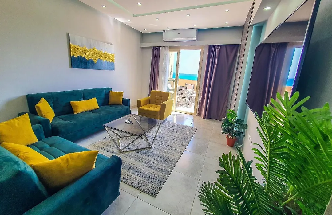 Sea Dreams @ Hurghada Dreams apartment comprises a balcony and a seating area featuring a sofa, and modern comforts like a television. The property includes 1 bedroom. Guests will benefit from a separate toilet and a shower. In addition, there are bath sheets included in the bathroom.
